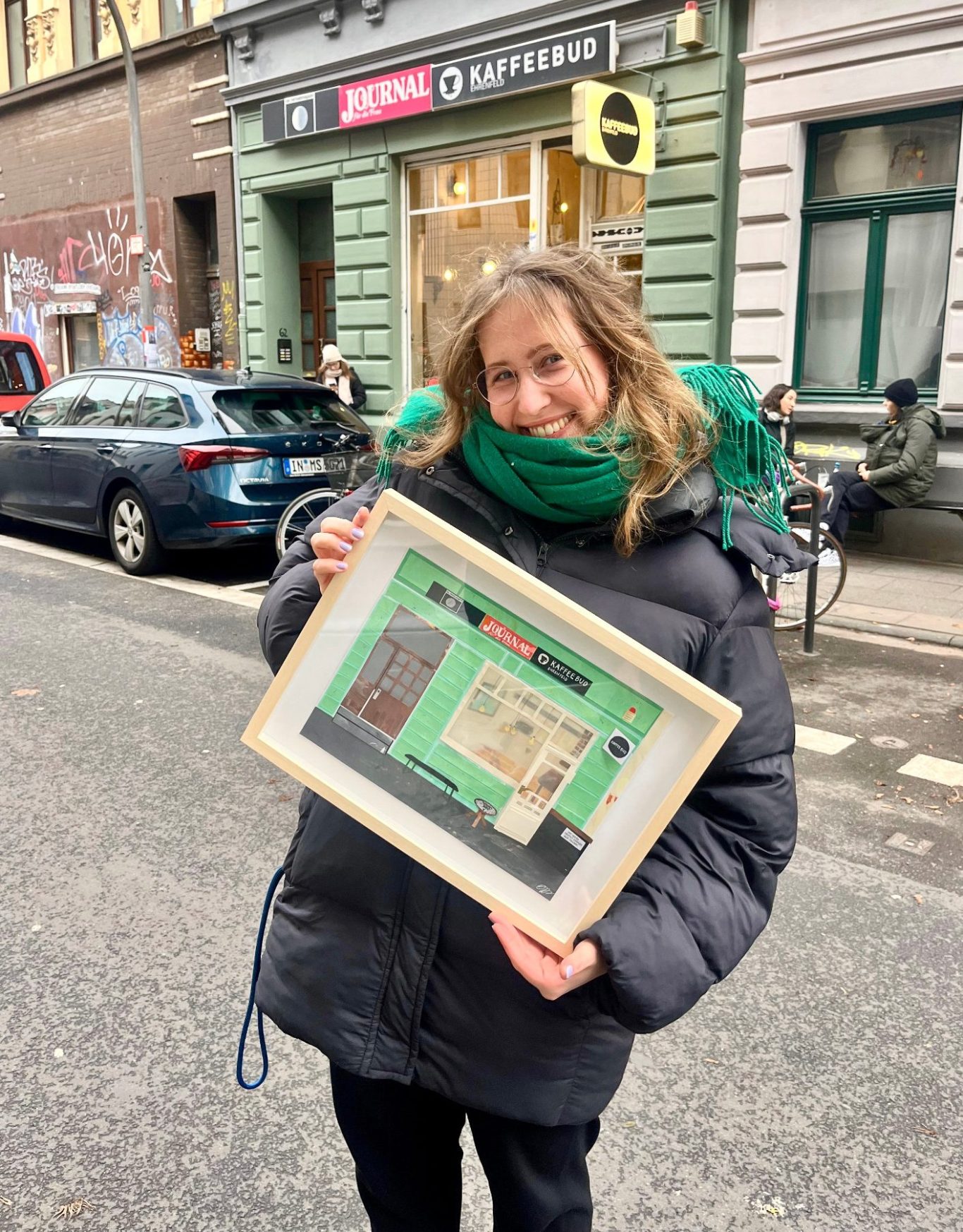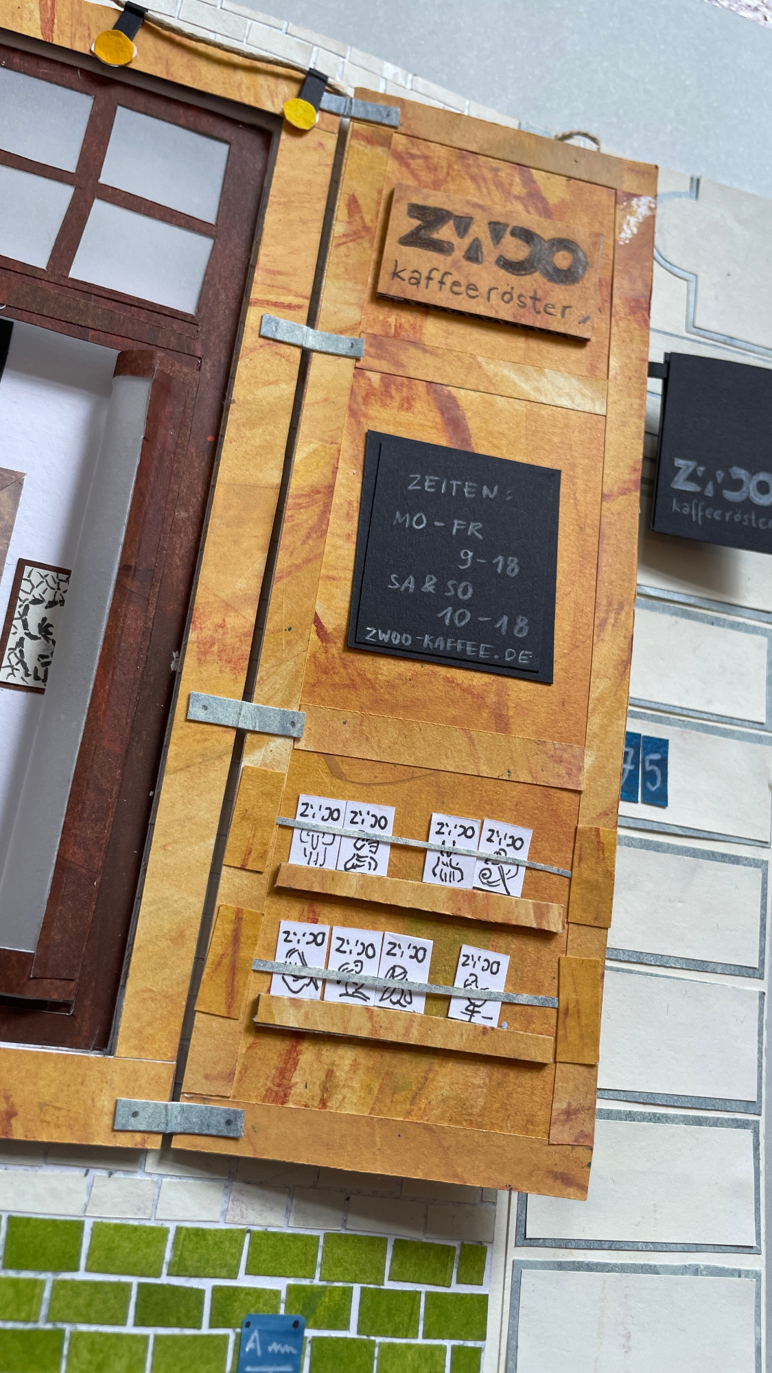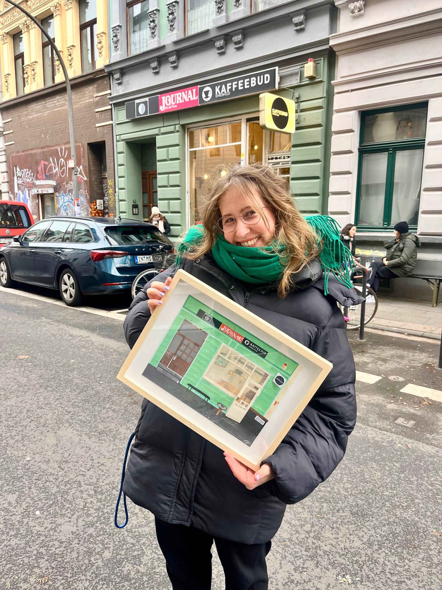 Ob im Sommer einen Kaffee auf der Bank und dabei das Treiben auf der Straße beobachten oder im Winter, wenn es draußen schneit, im Warmen sitzen und dabei den köstlichen Möhrenkuchen schmecken lassen. In der Kaffeebud fühle mich jederzeit pudelwohl. Sie war meine erste dieser Collagen und ich habe mich in all ihre vielen kleinen Details verliebt…